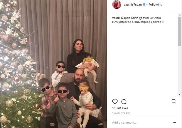 Ο Βασίλης Σπανούλης ξεκίνησε με… τίτλο το 2018, καθώς ήταν εκείνος που βρήκε το φλουρί. Λίγο αργότερα, πόζαρε ευτυχισμένος με τη γυναίκα και τα πέντε παιδιά του κι έστειλε μέσω Instagram ευχές για το νέο έτος.